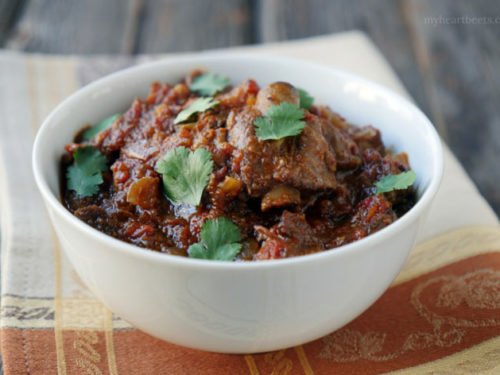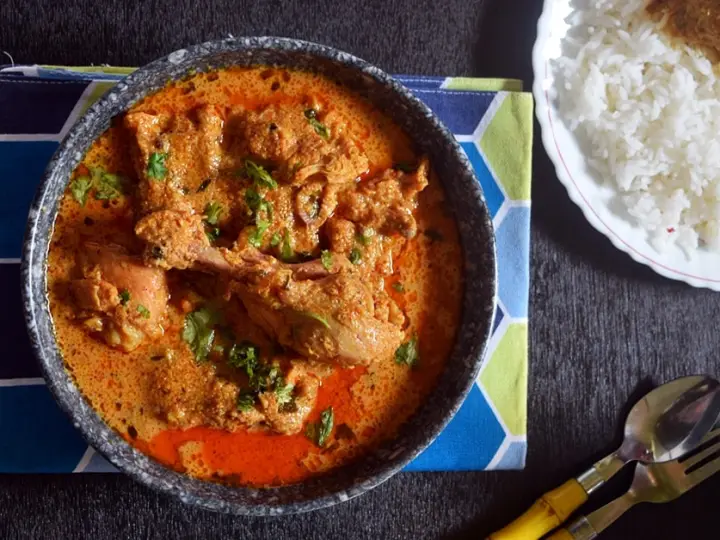Braised chicken in a savory tomato, ginger, garlic and herb sauce, with your choice of spiciness.